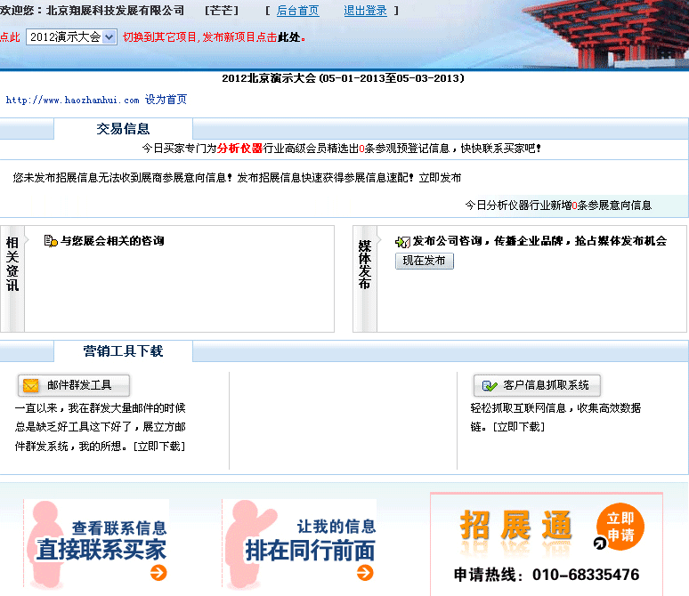 2.對(duì)成為好展會(huì)會(huì)員的主辦,請(qǐng)登錄后進(jìn)入如下管理界面