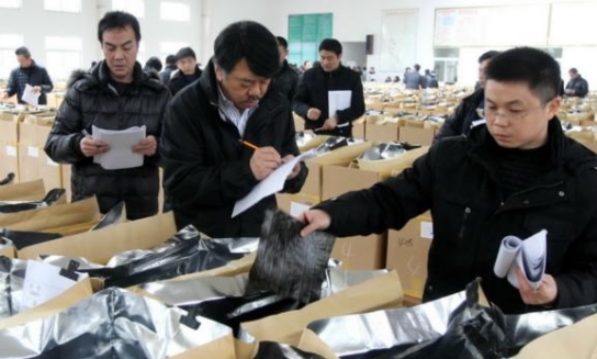 2月28日,中外客商在投標(biāo)會(huì)上查看干紫菜樣品、填寫(xiě)投標(biāo)書(shū)。當(dāng)日,江蘇省第三屆紫菜交易會(huì)在如東縣天一紫菜交易市場(chǎng)舉行,近31000箱干紫菜進(jìn)場(chǎng)交易。由于受天氣環(huán)境等因素影響,今年紫菜產(chǎn)量較往年同期相比下降近50%,紫菜的單張價(jià)格上漲40%左右。這次交易會(huì)吸引了日本、美國(guó)、澳大利亞等10多個(gè)國(guó)家和山東、福建、廣東等沿海一帶地區(qū)近400位中外客商進(jìn)場(chǎng)搶購(gòu)紫菜。